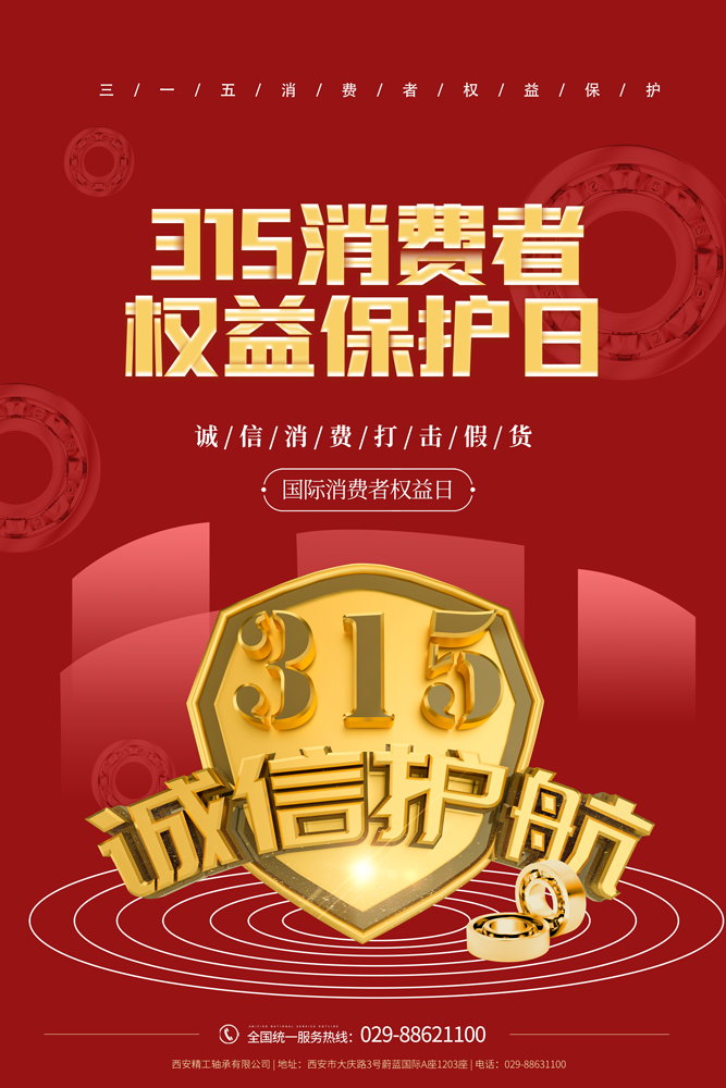 未來,西安精工軸承有限公司承諾會一如既往的誠信經(jīng)營,把每一天當做“315”,以質(zhì)量服務為百年精工賦能,守護好客戶的每一份權(quán)益!